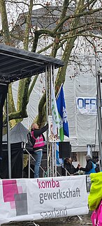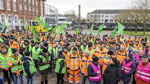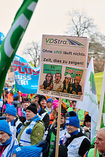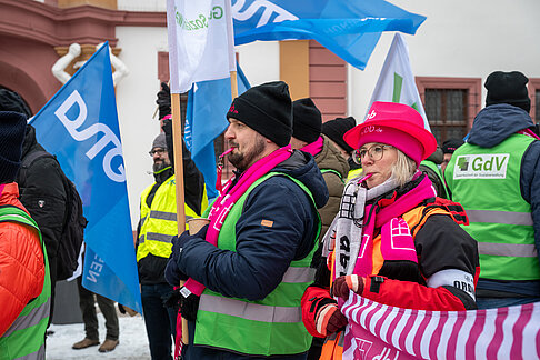 Vor Beginn der zweiten Verhandlungsrunde demonstrierten die Beschäftigten des öffentlichen Dienstes am 15. Januar 2026 anlässlich der Finanzministerkonferenz.